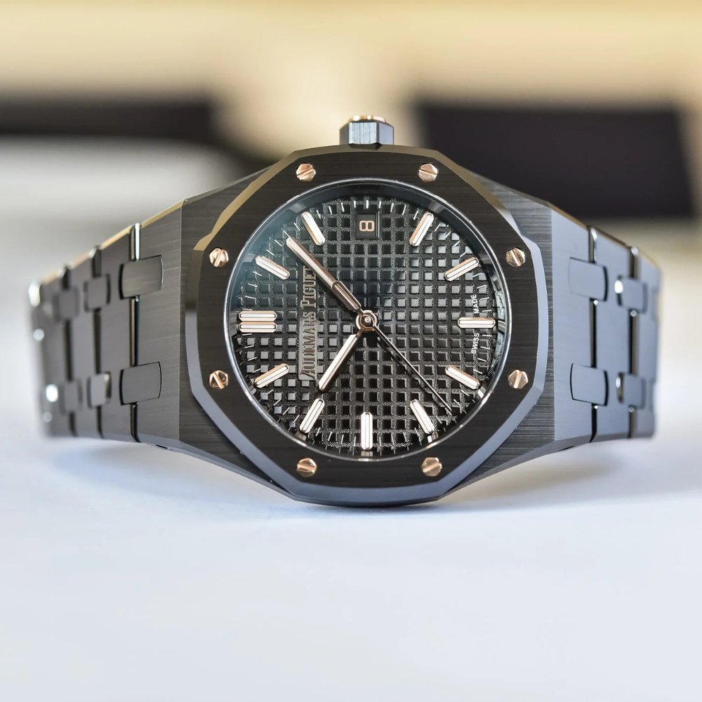 Modern and high-tech, ceramic delivers a sleek, scratch-resistant finish, adding a contemporary edge to the classic Royal Oak silhouette.