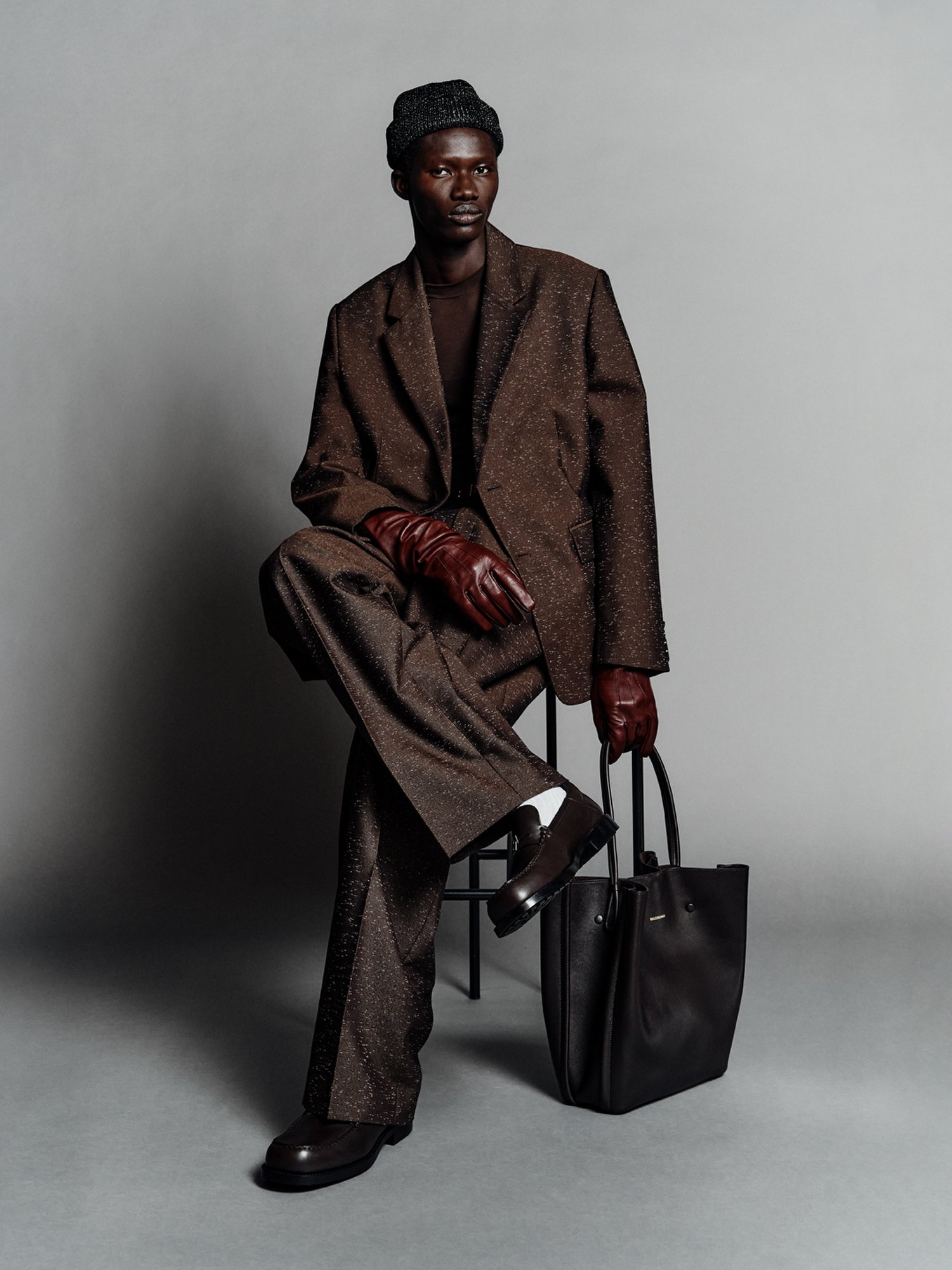 Cristóbal Balenciaga’s architectural DNA appears subtly — in sculptural coats, controlled volumes, and precise tailoring that anchor the more relaxed elements. These references never feel archival; instead, they translate heritage into contemporary physicality, reinforcing the house’s identity without nostalgia.