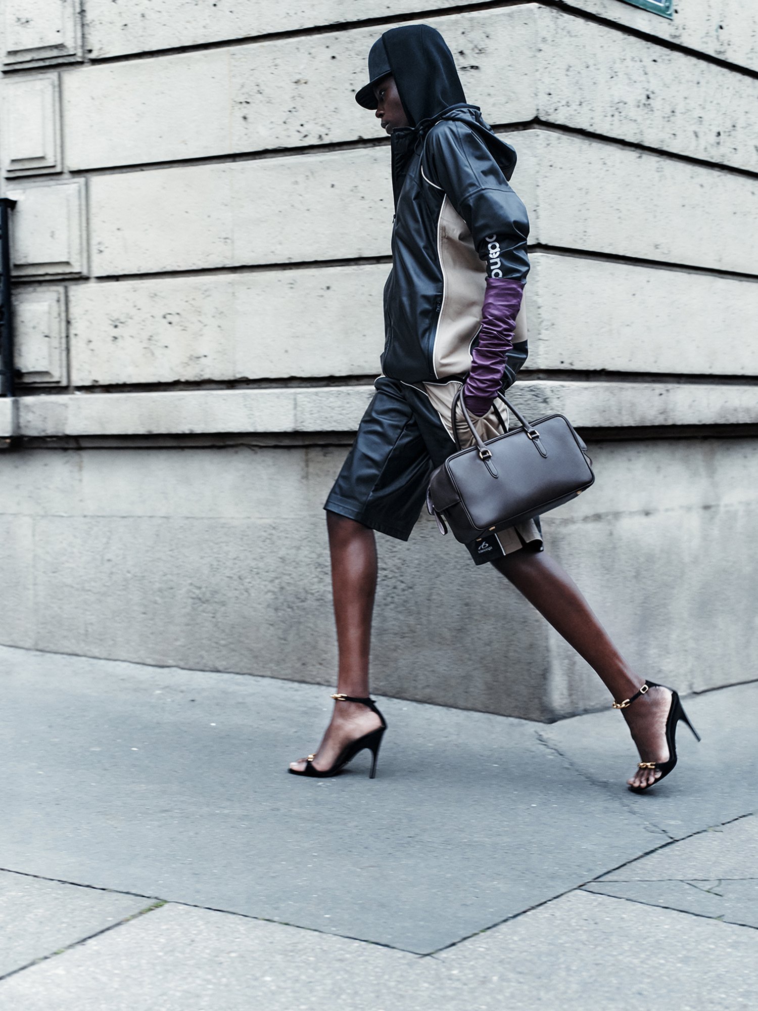 The collection foregrounds garments designed to move seamlessly across daily scenarios: stretch bodysuits, soft-structured tailoring, and streamlined footwear that feels equally at home on the street or in transitional spaces. The emphasis is clear — luxury today must adapt, not dictate.