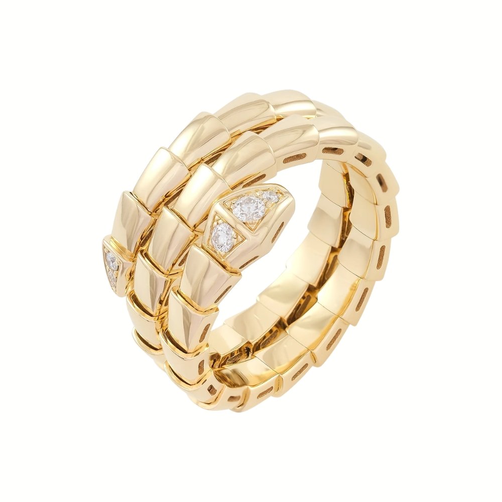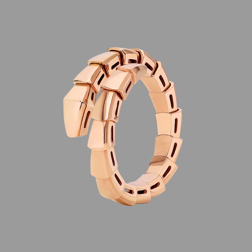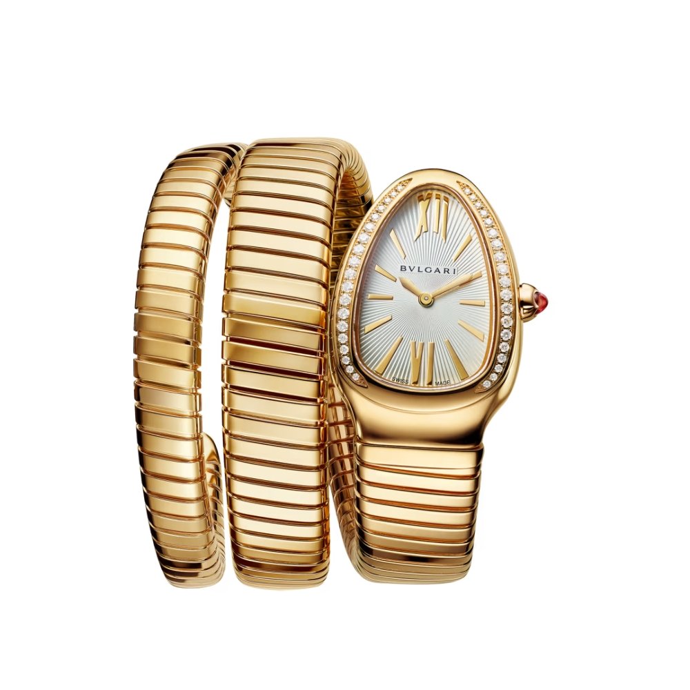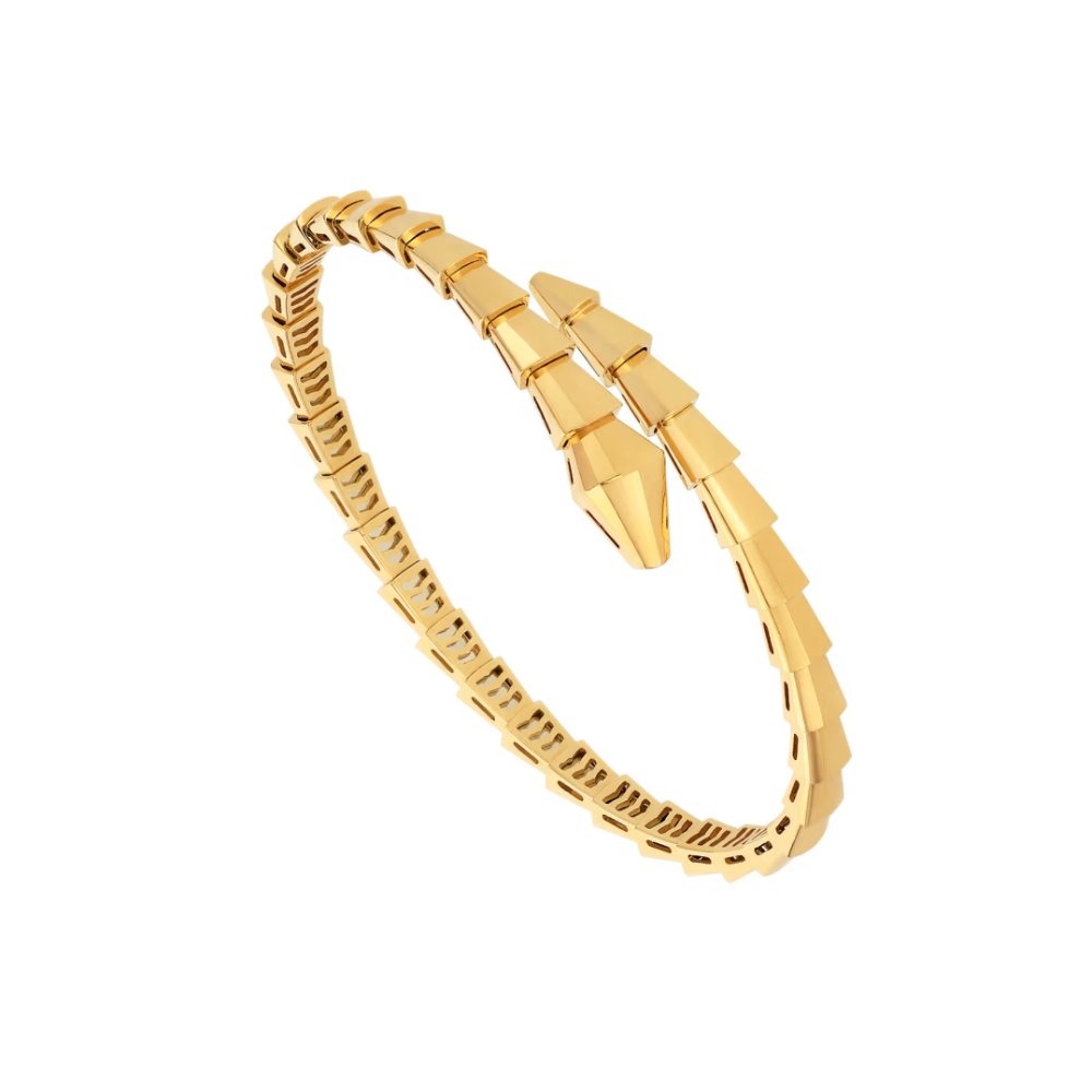 Rather than representing a literal snake, Bulgari interprets the motif through stylized geometry and elegant curves.