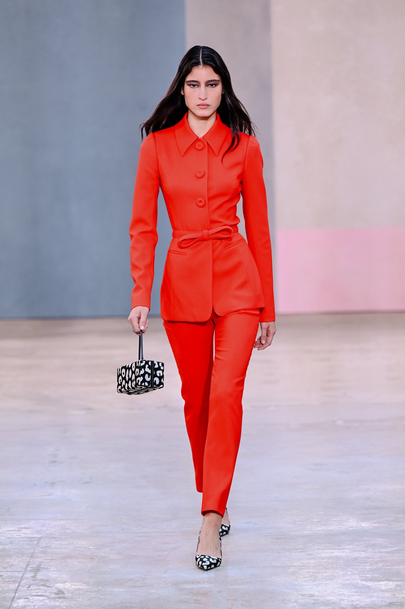 Texture supports colour rather than competing with it, reinforcing the collection’s disciplined glamour.