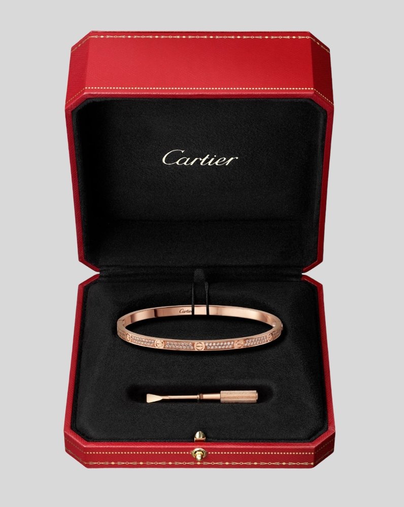 Few jewelry pieces carry the cultural weight of the Love Bracelet, created by Cartier in 1969. Designed by Aldo Cipullo in New York, the bracelet was conceived as a modern symbol of commitment—locked onto the wrist with a screwdriver.