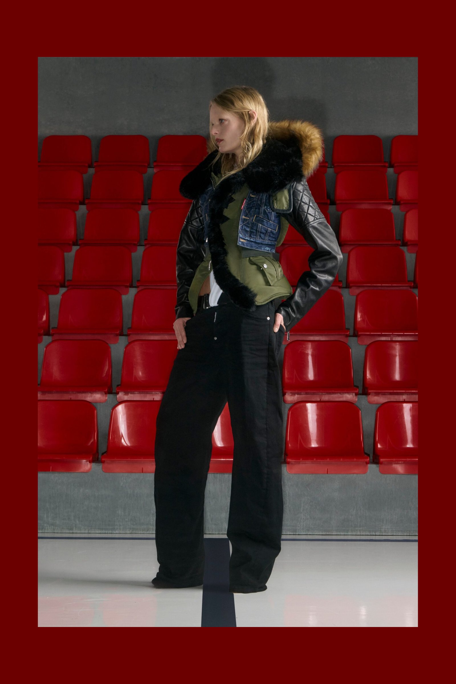 Layering is minimal, allowing each piece to stand on its own. Styling reinforces the idea that Dsquared2 garments are statements first, basics never.