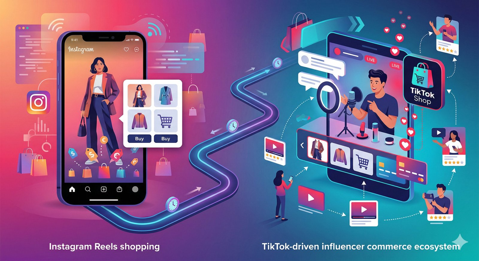 • TikTok → discovery-driven, viral commerce