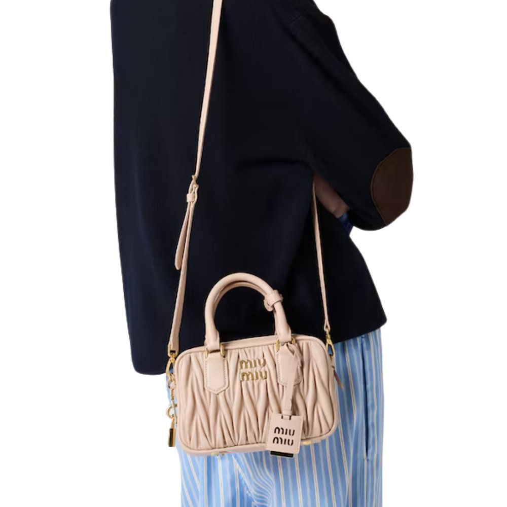 Introduced as part of Miu Miu’s evolving handbag lineup, the Arcadie quickly gained traction among fashion insiders and celebrities. Its rise has been fueled by a renewed interest in matelassé leather, a signature of the brand that blends texture, craftsmanship, and visual identity.
